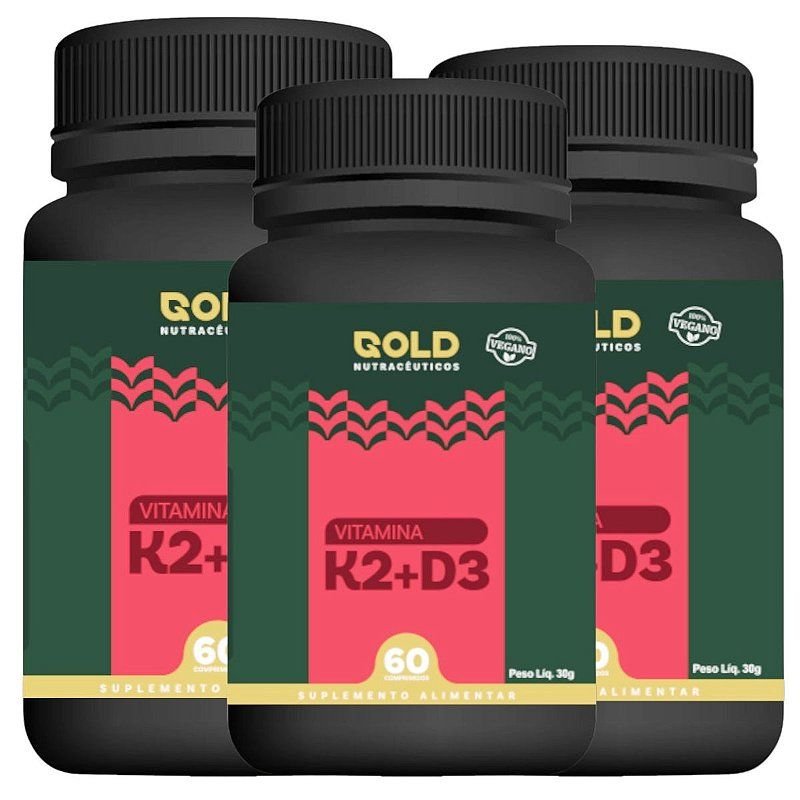 Vitamina K2 + D3 em cápsulas – Gold Nutracêuticos Fixação de cálcio nos ossos, saúde cardiovascular e imunidade ativa A Vitamina K2 + D3 Gold Nutracêuticos é uma combinação inteligente que potencializa a absorção e a fixação do cálcio no organismo, promovendo ossos fortes, articulações saudáveis e proteção arterial. Enquanto a vitamina D3 aumenta a absorção de cálcio no intestino, a vitamina K2 (menaquinona-7) direciona esse cálcio para os ossos, impedindo seu acúmulo em locais indesejados como as artérias. Ideal para quem busca prevenção da osteoporose, suporte cardiovascular e fortalecimento imunológico. Benefícios da Vitamina K2 + D3 Gold Nutracêuticos: